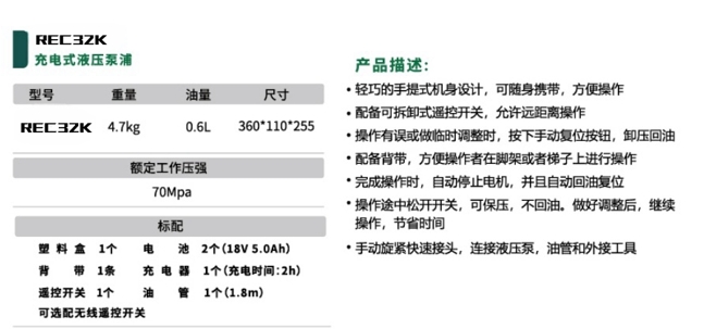 充電式液壓泵浦REC3ZK